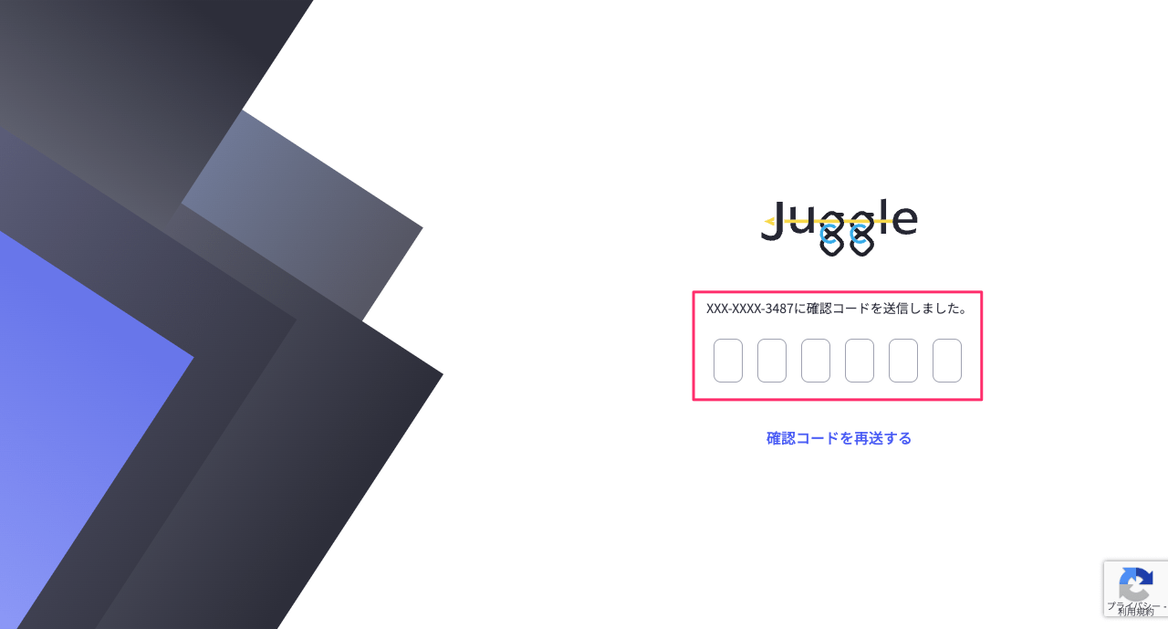 https://user.juggle.jp/sign-in にアクセスして、ログイン画面へ遷移します。