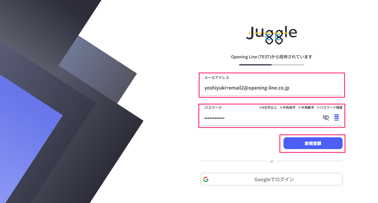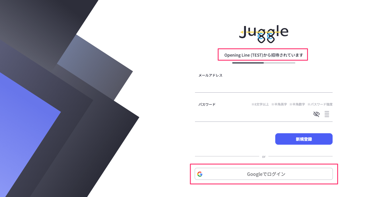 URLの例) https://user.juggle.jp/sign-up/aaaaaaaa-bbbb-cccc-dddd-eeeeeeeeeeee