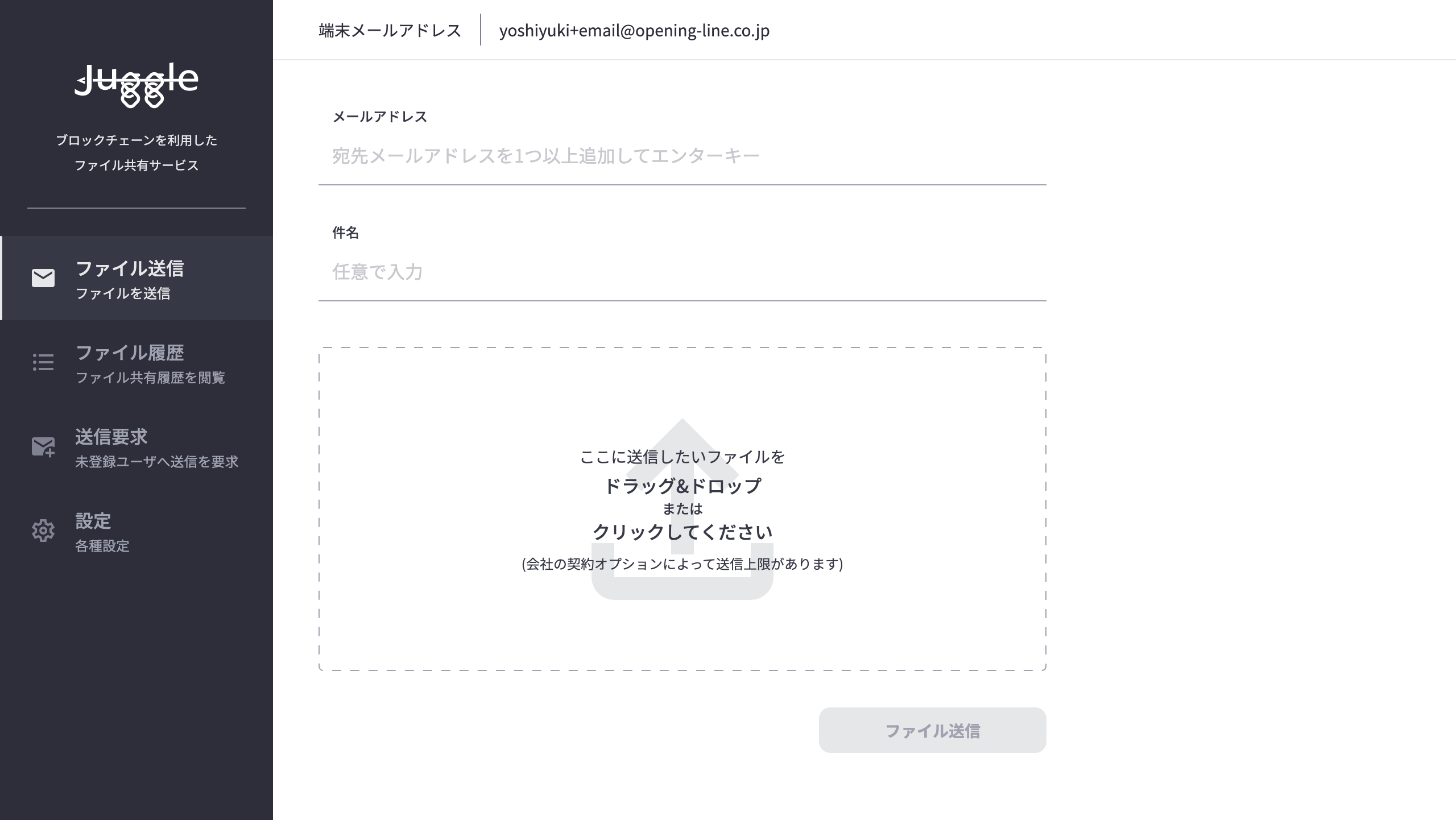 ログインに成功すると、送信画面へ遷移します。