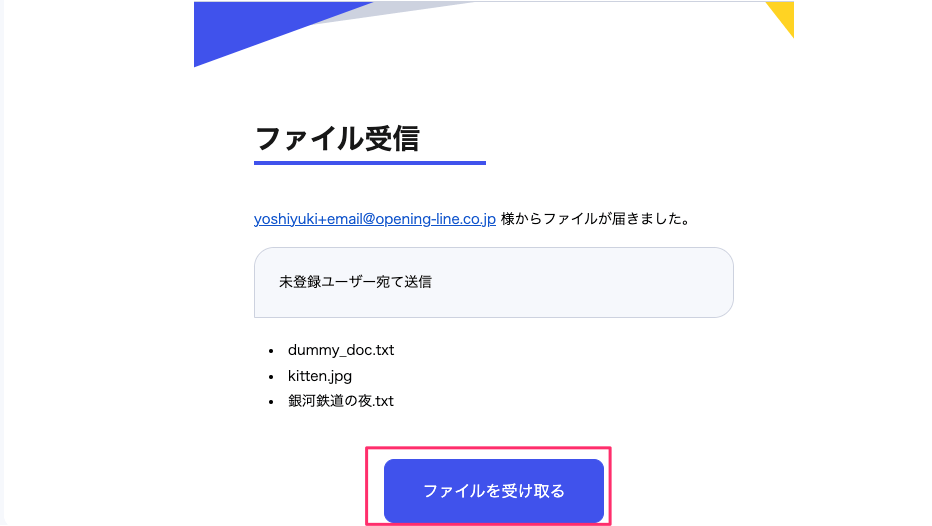 アカウントをお持ちの方は、ログインを行い、ファイル受信の手順に従ってください。