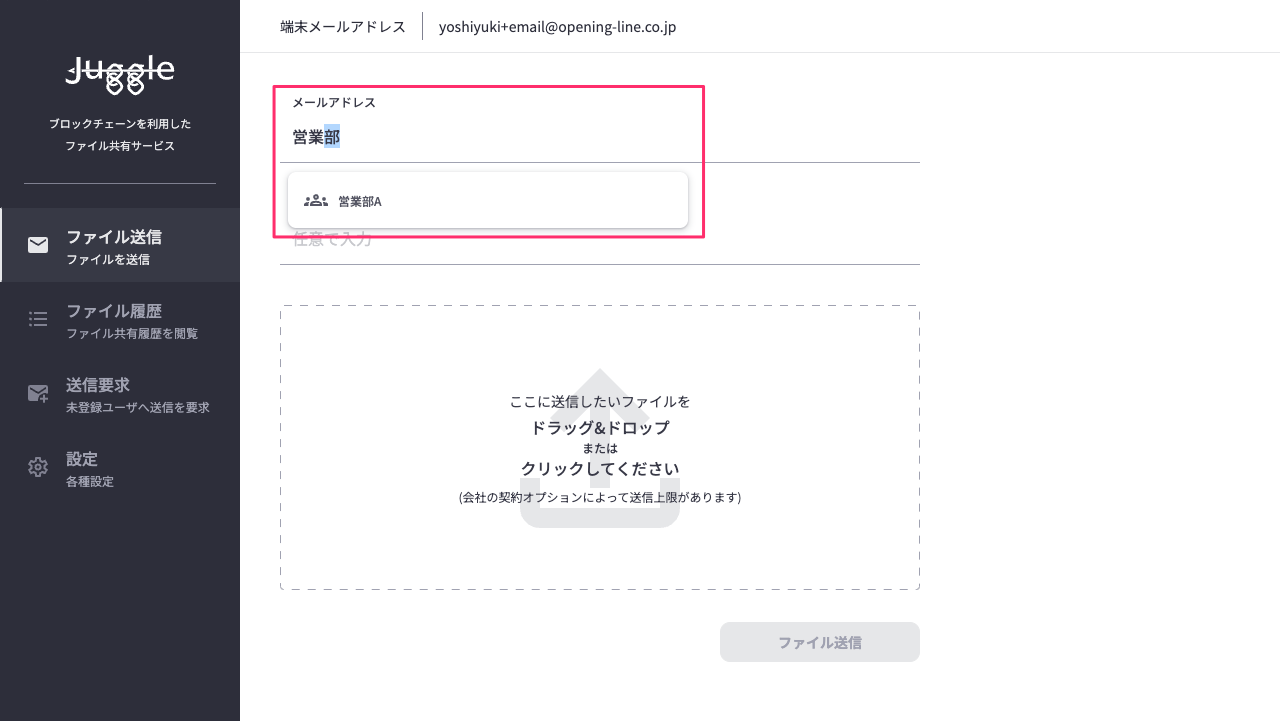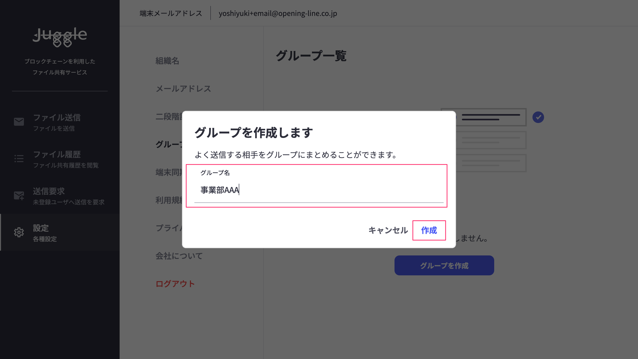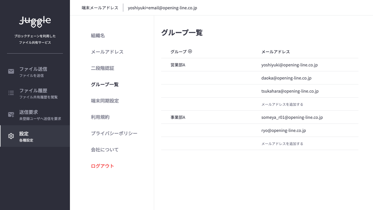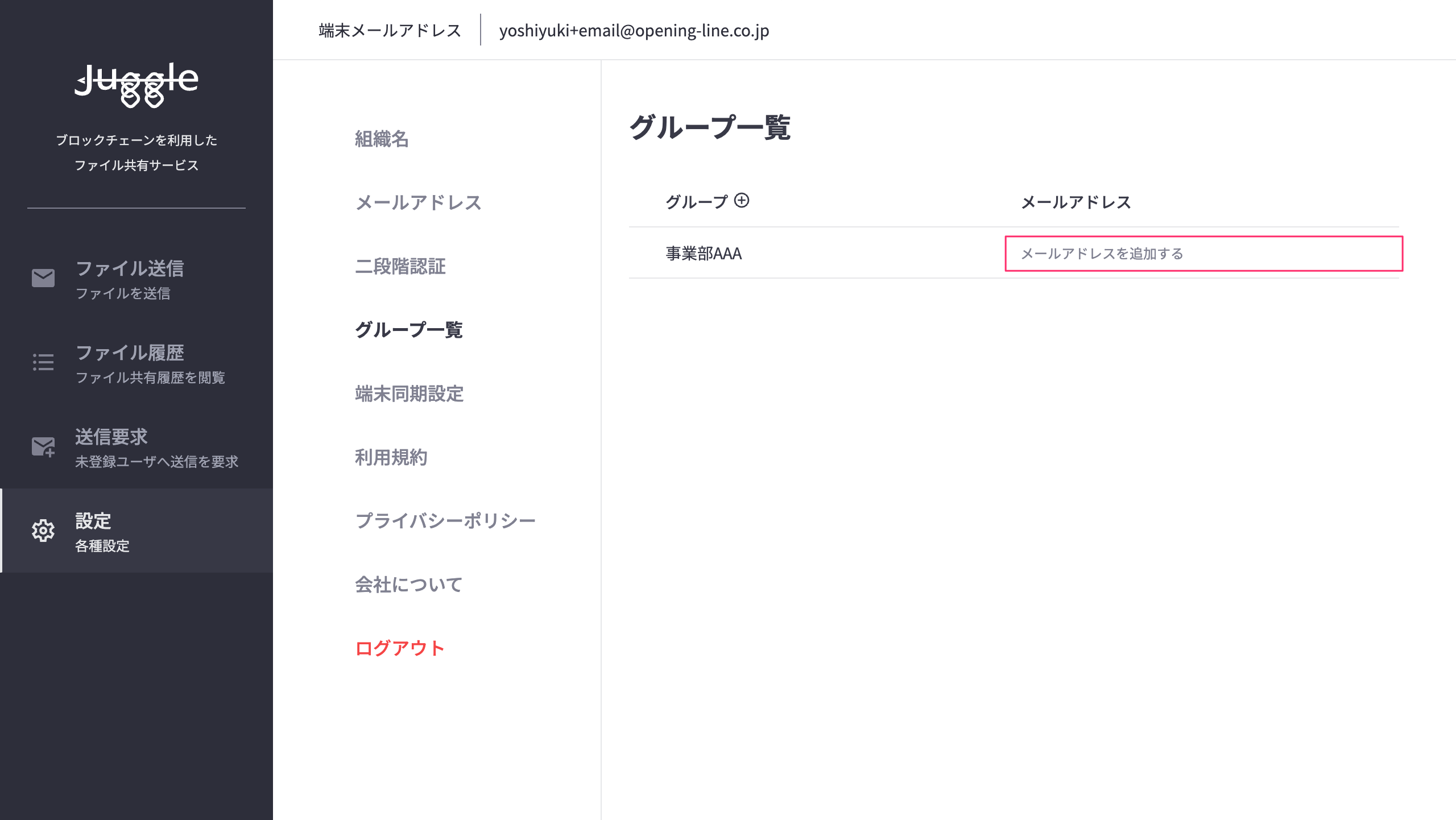 追加できるメールアドレスは同じグループに所属するメールアドレスのみです。