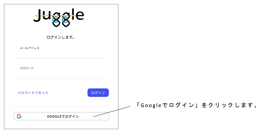 Googleアカウントでログインする場合は、「Googleでログイン」をクリックします。
